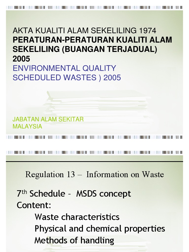Akta Kualiti Alam Sekitar Buangan Terjadual Hazardous Waste Waste