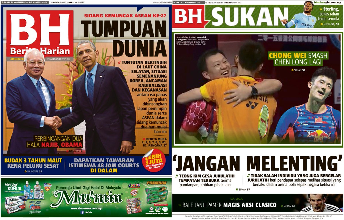 Berita Harian No Twitter Paparan Muka Hadapan Bh Dan Bh Sukan Sabtu 21 November 2015 Https T Co Qhyo4qyesa