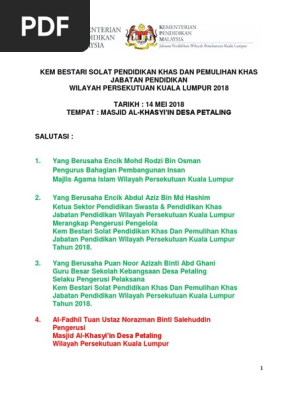 Salutasi Teks Majlis Tilawah Alquran Dan Nasyid Pend Khas Wpkl 2018