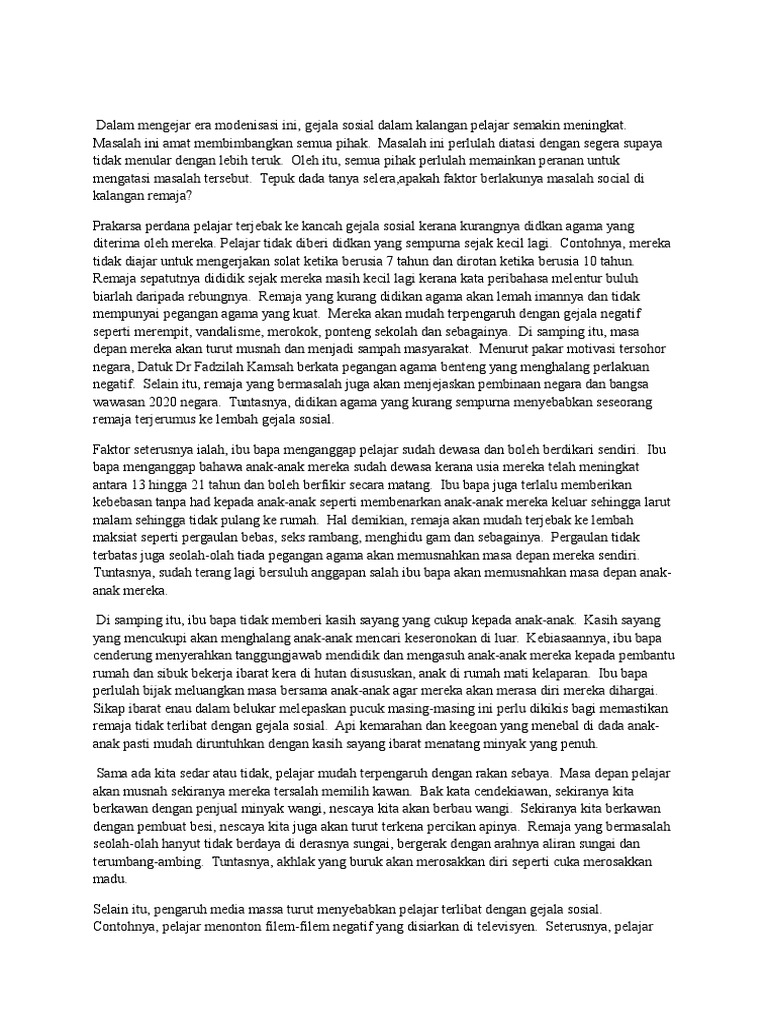 Doc Karangan Masalah Gejala Sosial Docx Ida Yeop Academia Edu