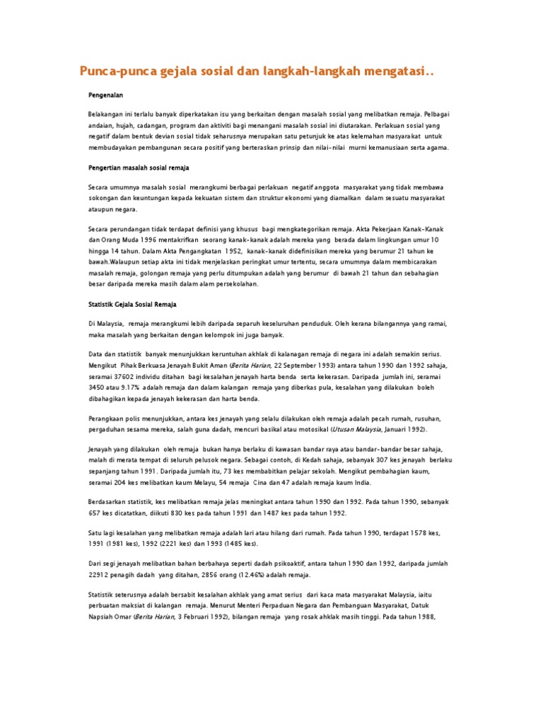 Masalah Gejala Sosial Dalam Kalangan Remaja Lessons Tes Teach
