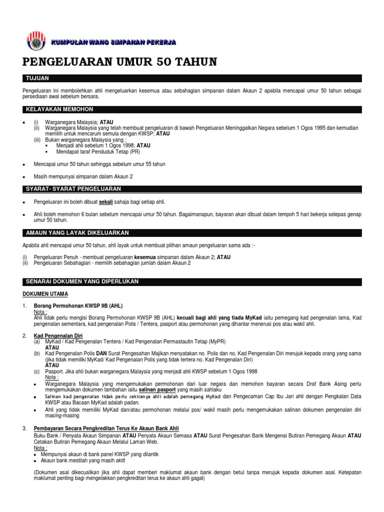 Panduan Untuk Pengeluaran Kwsp Umur 50 Tahun Bagi Akaun 2