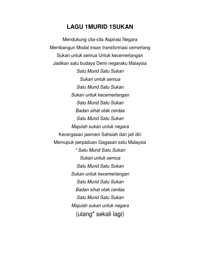 Lagu 1 Murid 1 Sukan Beserta Lirik Youtube