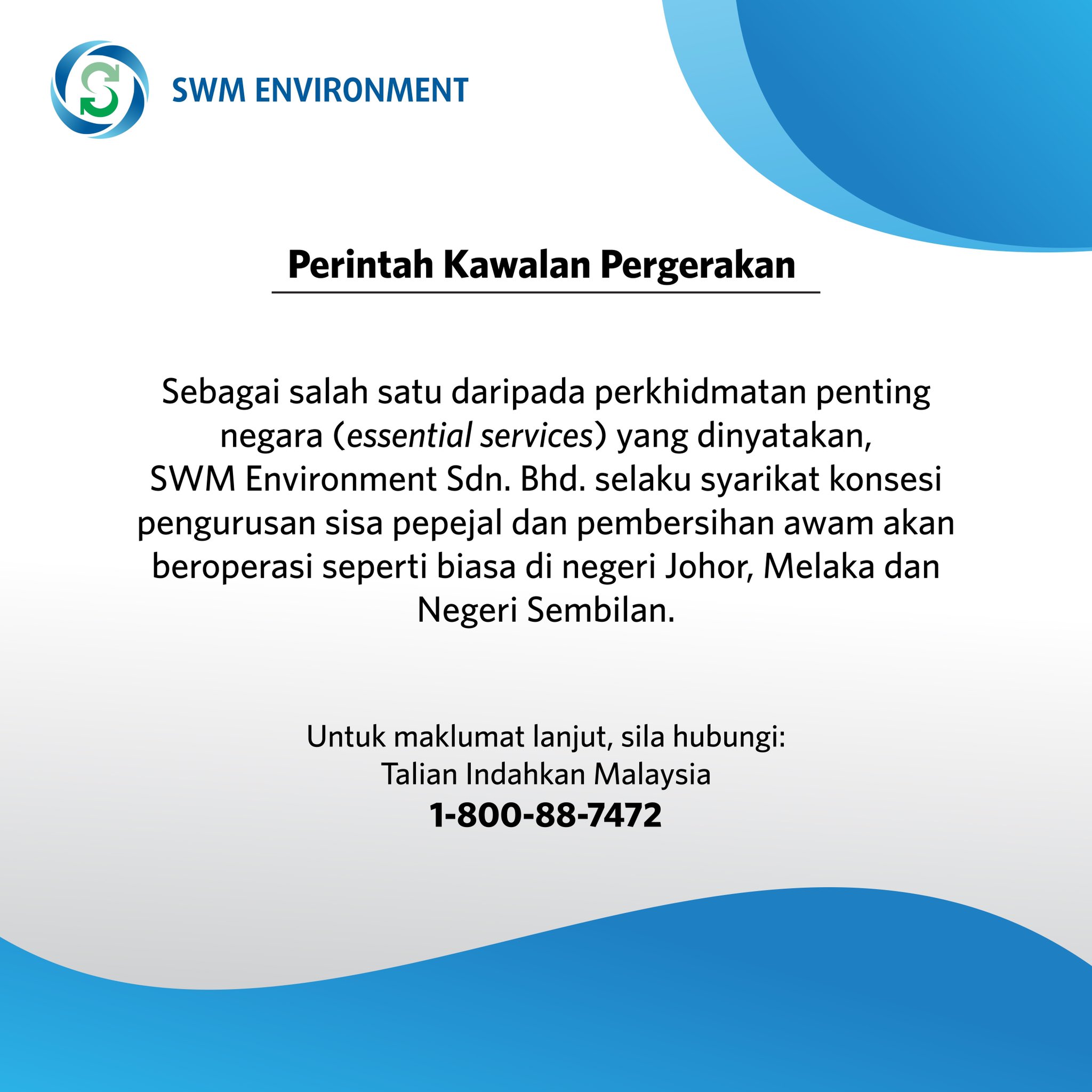 Swm Environment Di Twitter Susulan Dari Perutusan Khas Yab Perdana Menteri Semalam Adalah Dimaklumkan Bahawa Pihak Swm Environment Akan Terus Beroperasi Seperti Biasa Di Johor Melaka Dan Negeri Sembilan Mengikut Jadual Yang