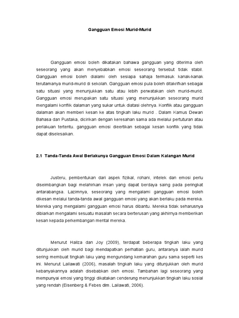 Gangguan Emosi Dalam Kalangan Murid Murid Sekolah